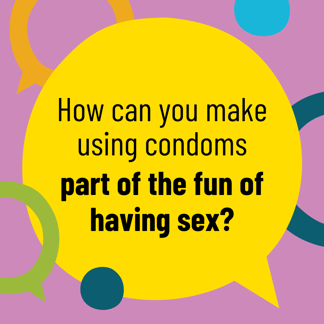 There are lots of ways condoms can add to the fun and enjoyment of sex. For example, you can try different types of condoms with different textures and flavours. You can also make putting on a condom part of the fun of foreplay. Condoms let you relax and have a great time without worrying about risks.